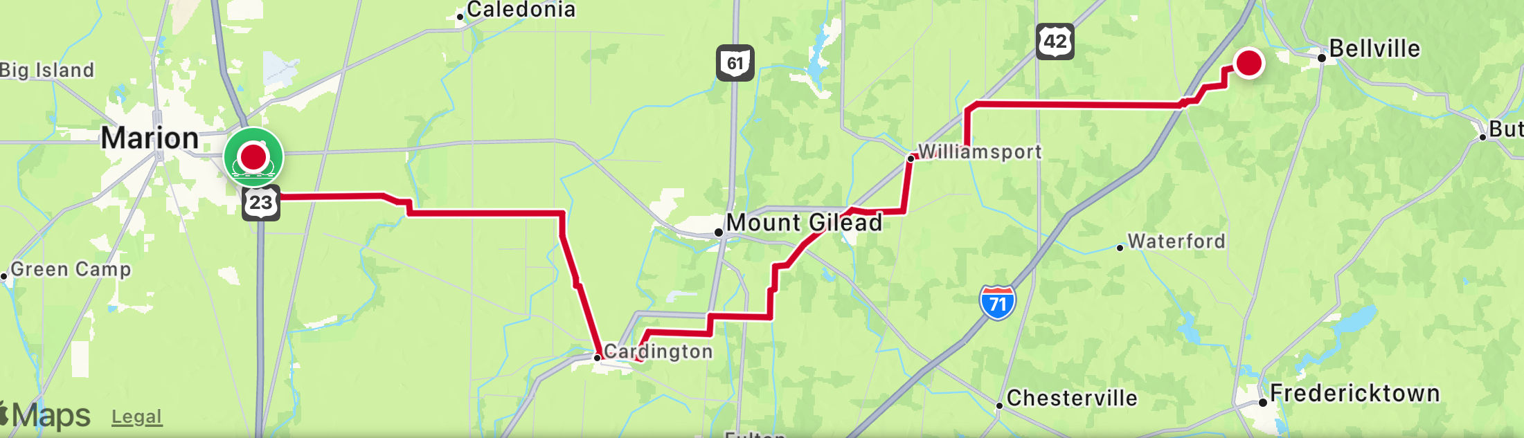 Tomorrow we head east to Mohican State Forest, Loudonville and then north to Ashland. Tomorrow’s distance will be close to today’s, but we have some very serious hills and more hot temps.