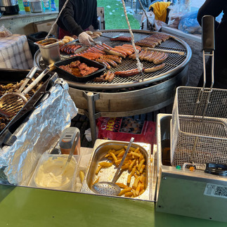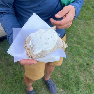 Naturally, we sampled our way through: handbread with cheese and ham, bratwurst, sautéed mushrooms smothered in hollandaise, and a baumstriezel (a cinnamon-sugar chimney cake). And yes—we finally got the gelato we earned yesterday!