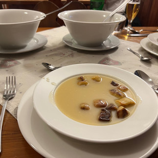 The menu showcased regional produce, fungi, fish, and meat—each dish was a delight to the senses and absolutely delicious. We’ve made quite a leap in our culinary experiences - remember we had a grocery store parking lot picnic on our last day of walking (revisit Day 19 HERE)